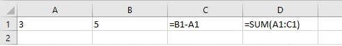 Питання №6: Дано: А1=3, В1=5, С1=В1-А1, D1=SUM(A1:C1) (див. мал.). Яким буде результат обчислень за формулою у клітинці D1?