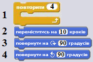 Питання №10: Виберіть способи малювання квадрату по закодованим діям