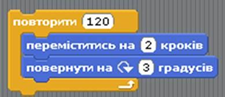 Питання №2: На скільки градусів буде виконано поворот у результаті виконання такого циклу?