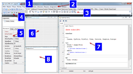 Об'єктно-орієнтоване програмування. Тест 5 Питання №1: Що з переліченого не відноситься до середовищ програмування? Free Pascal Lazarus PyCharm Paint Питання №2: У вікні Інспектор об’єктів містяться дві вкладки: команди меню властивості і події список файлів і компонентів властивості і написи Питання №3: Головна форма проекту має назву ... Data module Main Application Form Питання №4: Що таке елемент керування? Події, які можуть виникати внаслідок деяких дій користувача Візуальний об’єкт із заданим набором властивостей і методів Набір меню, панелей і вікон Програмна оболонка для системи програмування Питання №5: Процес перетворення тексту програми на виконувану програму - це ... компіляція передавання видалення трансформація Питання №6: Середовище програмування - це ... набір меню, панелей і вікон, що у сукупності утворюють робоче місце програміста програмна оболонка для системи програмування комп’ютерний клас система позначень, яка використовується для запису алгоритмів Питання №7: Процедура - це ... послідовність операторів, які виконуються людиною опис елемента керування послідовність операторів, які виконуються у відповідь на деяку подію подія, що відбувається з елементом керування Питання №8: До алфавіту мови Lazarus входять такі символи: цифри великі і малі літери українського алфавіту знаки арифметичних операцій, спеціальні символи великі і малі літери латинського алфавіту Питання №9: Познач складові системи програмування налагоджувач текстовий редактор транслятор засоби автоматизації редактор формул табличний процесор Питання №10: Встановіть НЕвірні ознаки ідентифікатора False Істина Змінна Хибність Константа Питання №11: Розробка прикладної програми в середовищі Lazarus складається з декількох етапів. Розставте їх у правильній послідовності Тестування та налагодження програми Аналіз та планування виконання завдання Написання програми опрацювання подій Підготовка проекту Розміщення компонентів інтерфейсу користувача на формі проекту Питання №12: Головне меню --- №1 №2 №3 №4 №5 №6 №7 №8 Вікно форми --- №1 №2 №3 №4 №5 №6 №7 №8 Інспектор об'єктів --- №1 №2 №3 №4 №5 №6 №7 №8 Заголовок вікна --- №1 №2 №3 №4 №5 №6 №7 №8 Вкладки компонентів --- №1 №2 №3 №4 №5 №6 №7 №8 Вікно повідомлень --- №1 №2 №3 №4 №5 №6 №7 №8 Команди керування проектом --- №1 №2 №3 №4 №5 №6 №7 №8 Вікно програмного коду --- №1 №2 №3 №4 №5 №6 №7 №8